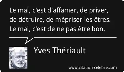 Le mal, c'est d'affamer, de priver, de détruire, de mépriser les êtres. Le mal, c'est de ne pas être bon.