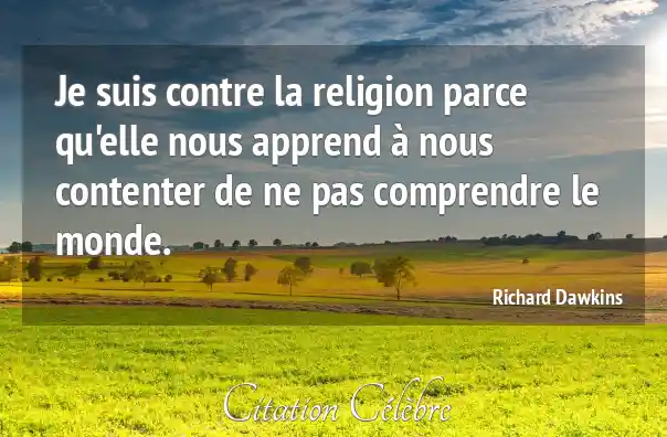 Je suis contre la religion parce qu'elle nous apprend à nous contenter de ne pas comprendre le monde.