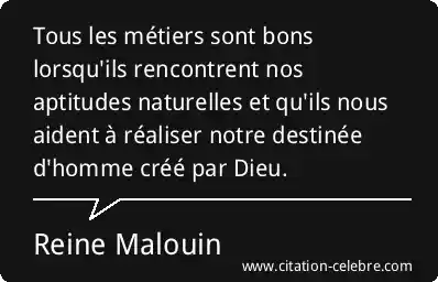 Tous les métiers sont bons lorsqu'ils rencontrent nos aptitudes naturelles et qu'ils nous aident à réaliser notre destinée d'homme créé par Dieu.