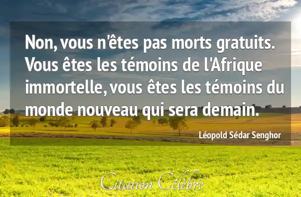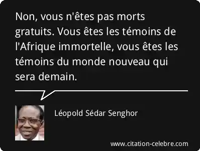 Non, vous n'êtes pas morts gratuits. Vous êtes les témoins de l'Afrique immortelle, vous êtes les témoins du monde nouveau qui sera demain.