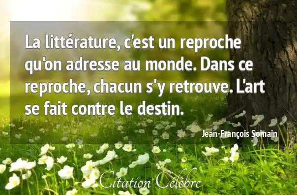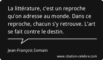 La littérature, c'est un reproche qu'on adresse au monde. Dans ce reproche, chacun s'y retrouve. L'art se fait contre le destin.