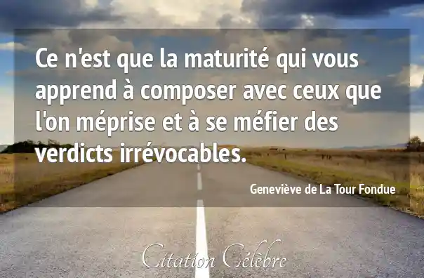 Ce n'est que la maturité qui vous apprend à composer avec ceux que l'on méprise et à se méfier des verdicts irrévocables.
