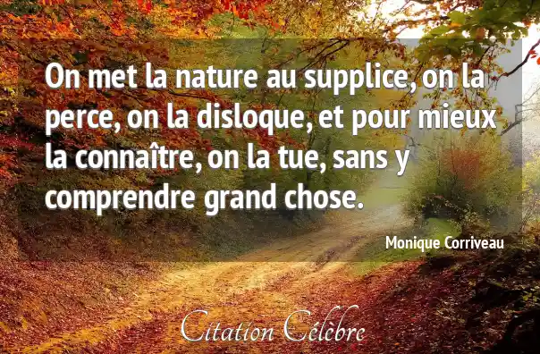On met la nature au supplice, on la perce, on la disloque, et pour mieux la connaître, on la tue, sans y comprendre grand chose.