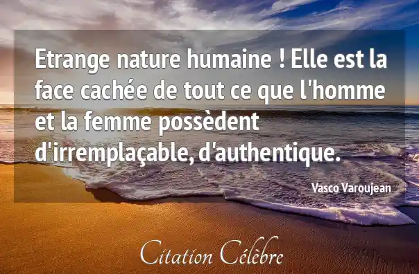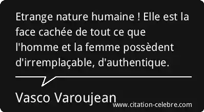Etrange nature humaine ! Elle est la face cachée de tout ce que l'homme et la femme possèdent d'irremplaçable, d'authentique.