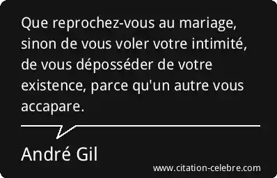 Que reprochez-vous au mariage, sinon de vous voler votre intimité, de vous déposséder de votre existence, parce qu'un autre vous accapare.