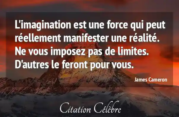 L'imagination est une force qui peut réellement manifester une réalité. Ne vous imposez pas de limites. D'autres le feront pour vous.