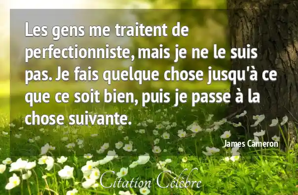Les gens me traitent de perfectionniste, mais je ne le suis pas. Je fais quelque chose jusqu'à ce que ce soit bien, puis je passe à la chose suivante.