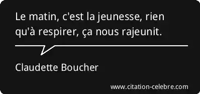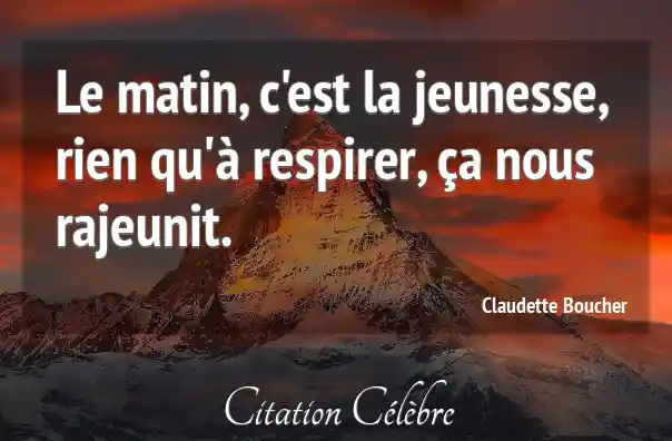 Le matin, c'est la jeunesse, rien qu'à respirer, ça nous rajeunit.