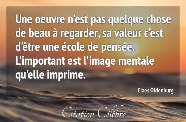 Une oeuvre n'est pas quelque chose de beau à regarder, sa valeur c'est d'être une école de pensée. L'important est l'image mentale qu'elle imprime.
