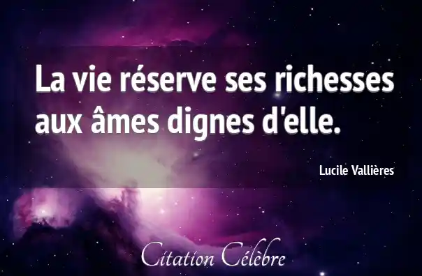 La vie réserve ses richesses aux âmes dignes d'elle.