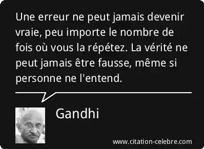 Une erreur ne peut jamais devenir vraie, peu importe le nombre de fois où vous la répétez. La vérité ne peut jamais être fausse, même si personne ne l'entend.