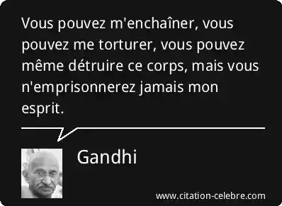 Vous pouvez m'enchaîner, vous pouvez me torturer, vous pouvez même détruire ce corps, mais vous n'emprisonnerez jamais mon esprit.