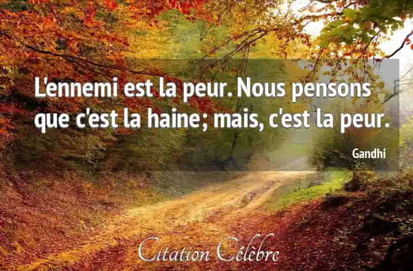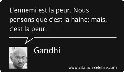 L'ennemi est la peur. Nous pensons que c'est la haine; mais, c'est la peur.