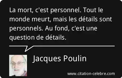 La mort, c'est personnel. Tout le monde meurt, mais les détails sont personnels. Au fond, c'est une question de détails.