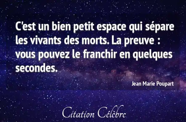 C'est un bien petit espace qui sépare les vivants des morts. La preuve : vous pouvez le franchir en quelques secondes.
