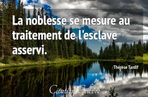 La noblesse se mesure au traitement de l'esclave asservi.