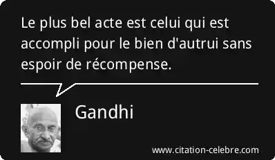 Le plus bel acte est celui qui est accompli pour le bien d'autrui sans espoir de récompense.
