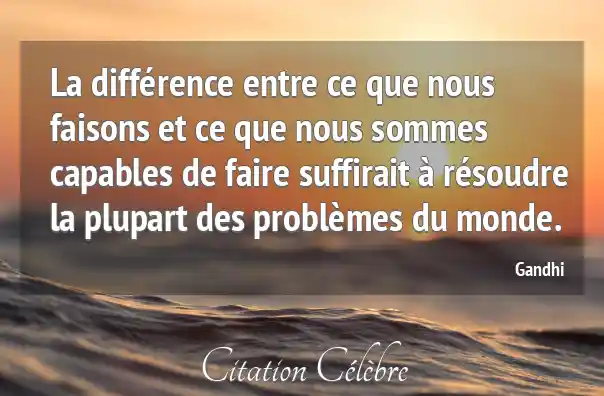 La différence entre ce que nous faisons et ce que nous sommes capables de faire suffirait à résoudre la plupart des problèmes du monde.
