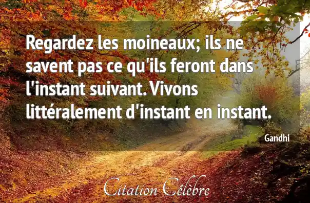 Regardez les moineaux; ils ne savent pas ce qu'ils feront dans l'instant suivant. Vivons littéralement d'instant en instant.
