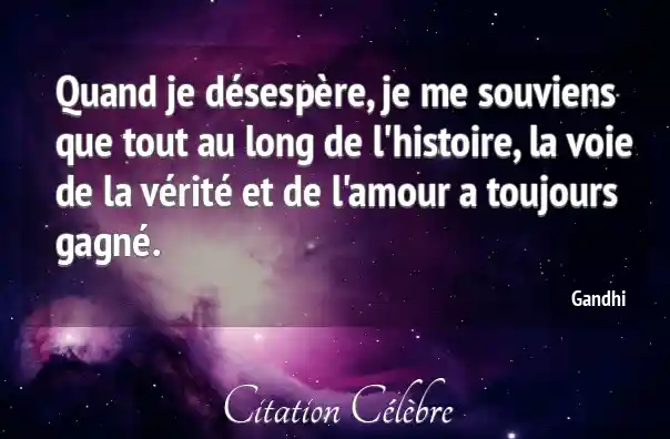 Quand je désespère, je me souviens que tout au long de l'histoire, la voie de la vérité et de l'amour a toujours gagné.
