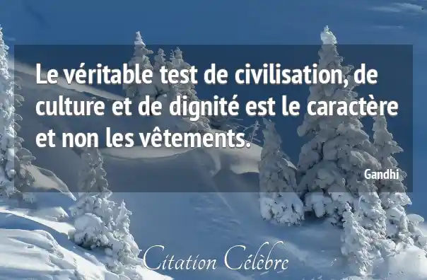 Le véritable test de civilisation, de culture et de dignité est le caractère et non les vêtements.