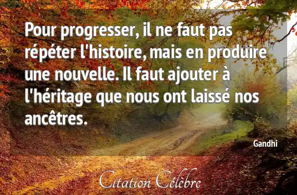 Pour progresser, il ne faut pas répéter l'histoire, mais en produire une nouvelle. Il faut ajouter à l'héritage que nous ont laissé nos ancêtres.