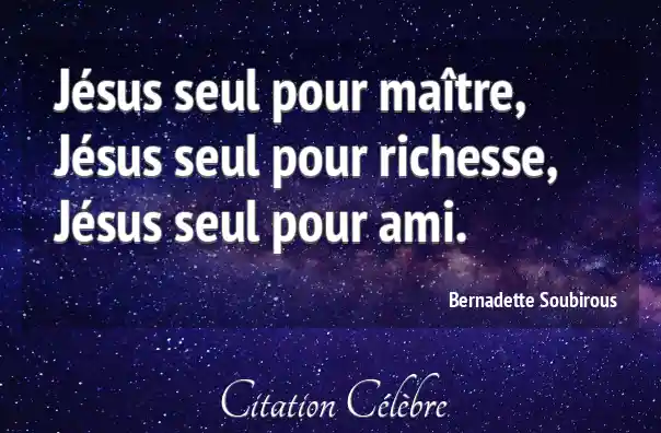 Jésus seul pour maître, Jésus seul pour richesse, Jésus seul pour ami.