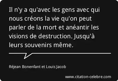 Il n'y a qu'avec les gens avec qui nous créons la vie qu'on peut parler de la mort et anéantir les visions de destruction. Jusqu'à leurs souvenirs même.