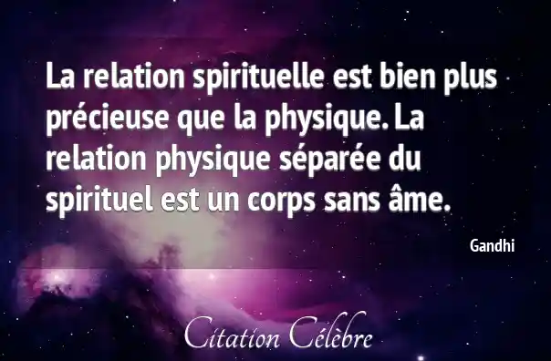 La relation spirituelle est bien plus précieuse que la physique. La relation physique séparée du spirituel est un corps sans âme.