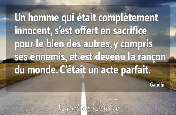 Un homme qui était complètement innocent, s'est offert en sacrifice pour le bien des autres, y compris ses ennemis, et est devenu la rançon du monde. C'était un acte parfait.