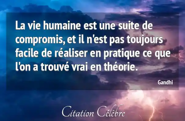 La vie humaine est une suite de compromis, et il n'est pas toujours facile de réaliser en pratique ce que l'on a trouvé vrai en théorie.