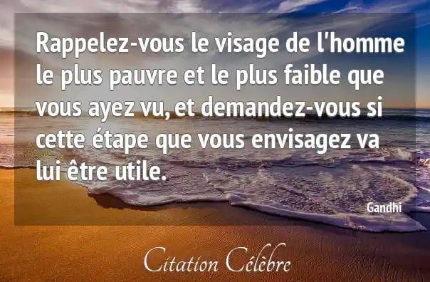 Rappelez-vous le visage de l'homme le plus pauvre et le plus faible que vous ayez vu, et demandez-vous si cette étape que vous envisagez va lui être utile.