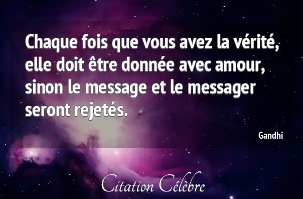 Chaque fois que vous avez la vérité, elle doit être donnée avec amour, sinon le message et le messager seront rejetés.