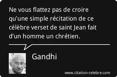 Ne vous flattez pas de croire qu'une simple récitation de ce célèbre verset de saint Jean fait d'un homme un chrétien.