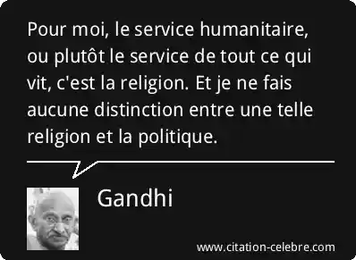 Pour moi, le service humanitaire, ou plutôt le service de tout ce qui vit, c'est la religion. Et je ne fais aucune distinction entre une telle religion et la politique.