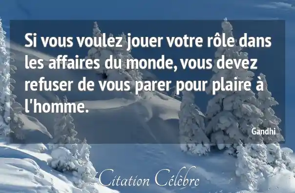 Si vous voulez jouer votre rôle dans les affaires du monde, vous devez refuser de vous parer pour plaire à l'homme.