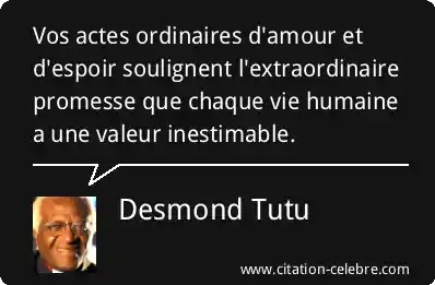 Vos actes ordinaires d'amour et d'espoir soulignent l'extraordinaire promesse que chaque vie humaine a une valeur inestimable.