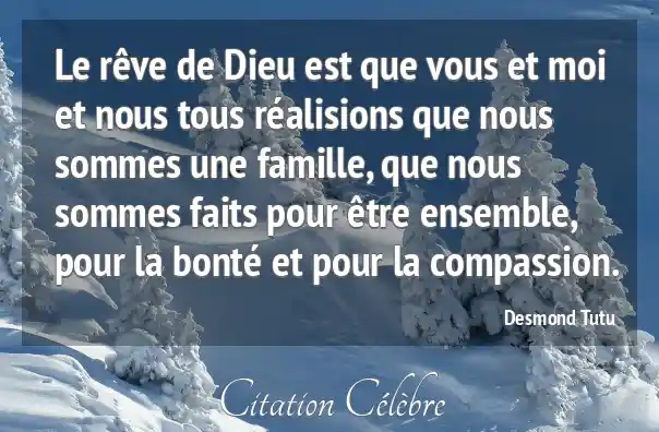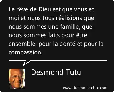 Le rêve de Dieu est que vous et moi et nous tous réalisions que nous sommes une famille, que nous sommes faits pour être ensemble, pour la bonté et pour la compassion.