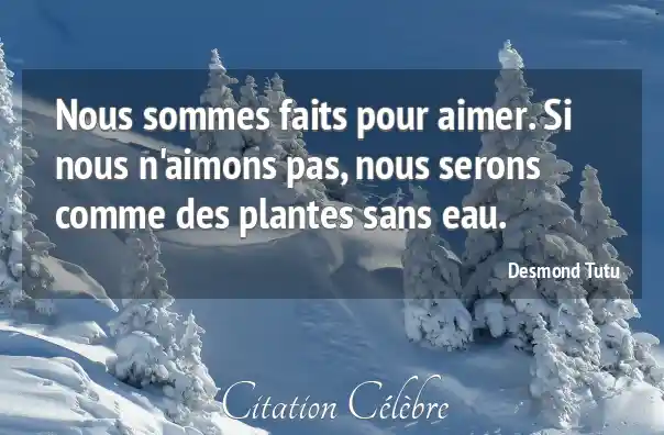 Nous sommes faits pour aimer. Si nous n'aimons pas, nous serons comme des plantes sans eau.