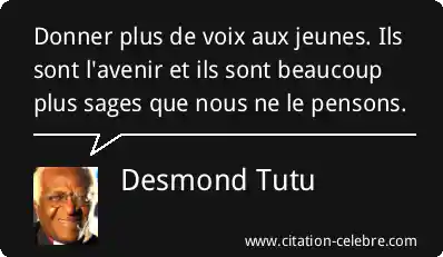 Citation Desmond Tutu avenir : Donner plus de voix aux jeunes. Ils sont l'avenir et...