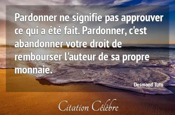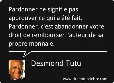 Pardonner ne signifie pas approuver ce qui a été fait. Pardonner, c'est abandonner votre droit de rembourser l'auteur de sa propre monnaie.