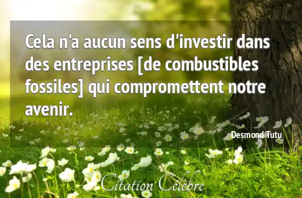 Cela n'a aucun sens d'investir dans des entreprises [de combustibles fossiles] qui compromettent notre avenir.