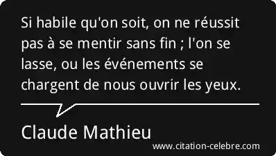 Si habile qu'on soit, on ne réussit pas à se mentir sans fin ; l'on se lasse, ou les événements se chargent de nous ouvrir les yeux.