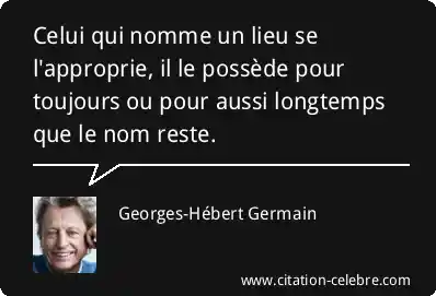 Celui qui nomme un lieu se l'approprie, il le possède pour toujours ou pour aussi longtemps que le nom reste.