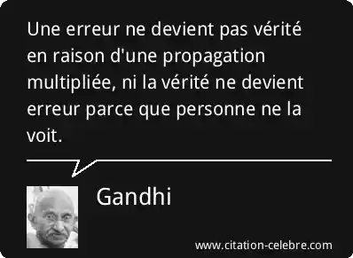 Une erreur ne devient pas vérité en raison d'une propagation multipliée, ni la vérité ne devient erreur parce que personne ne la voit.