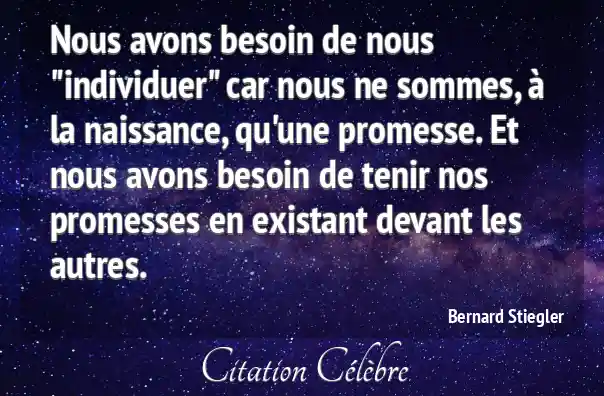 Nous avons besoin de nous "individuer" car nous ne sommes, à la naissance, qu'une promesse. Et nous avons besoin de tenir nos promesses en existant devant les autres.