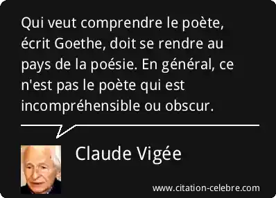 Qui veut comprendre le poète, écrit Goethe, doit se rendre au pays de la poésie. En général, ce n'est pas le poète qui est incompréhensible ou obscur.