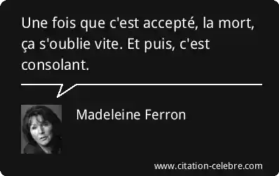 Une fois que c'est accepté, la mort, ça s'oublie vite. Et puis, c'est consolant.