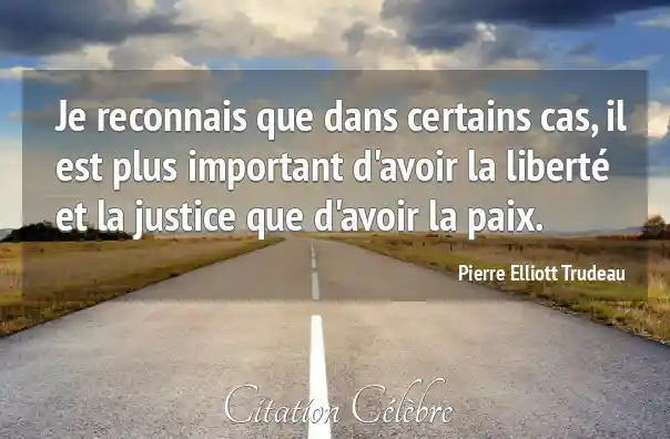 Je reconnais que dans certains cas, il est plus important d'avoir la liberté et la justice que d'avoir la paix.