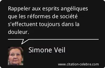 Citation Simone Veil douleur : Rappeler aux esprits angéliques que les réformes de société s'effectuent...